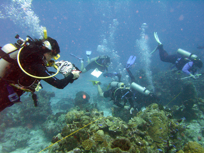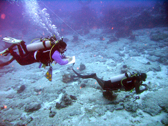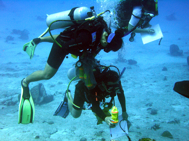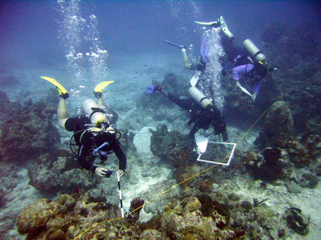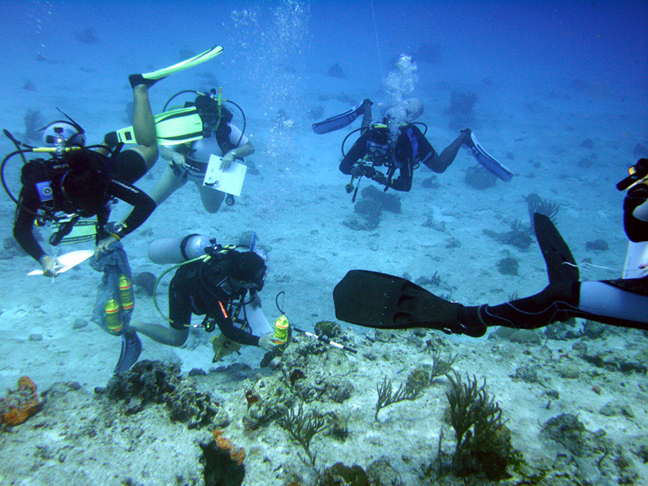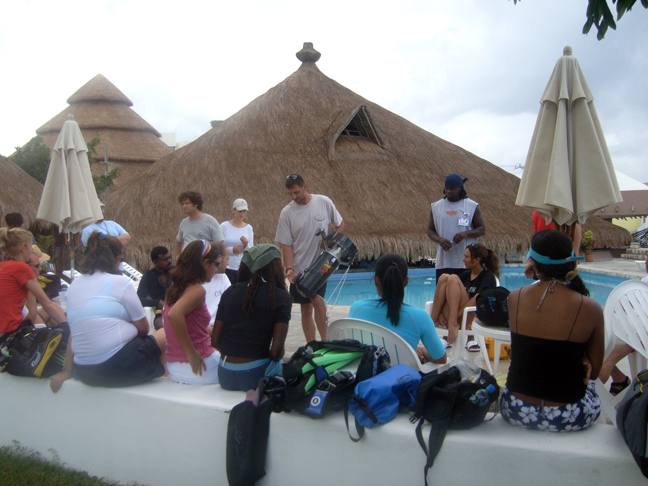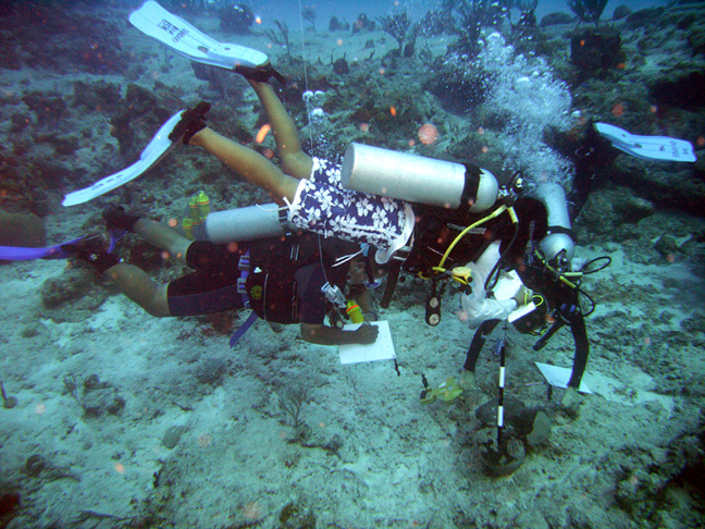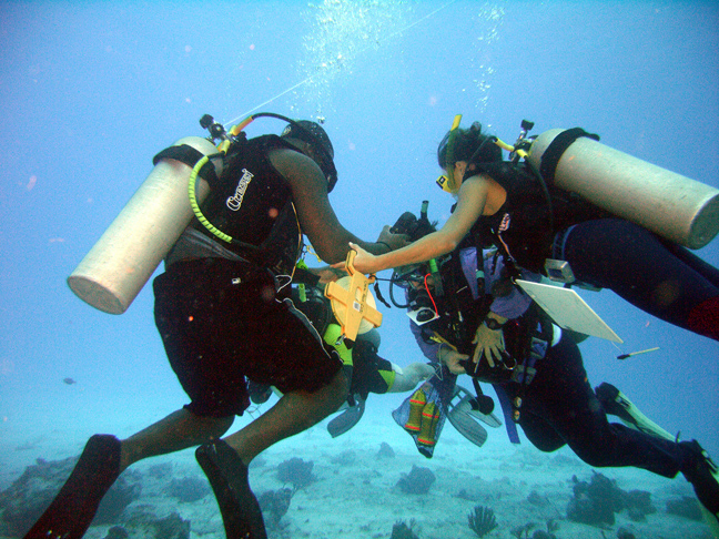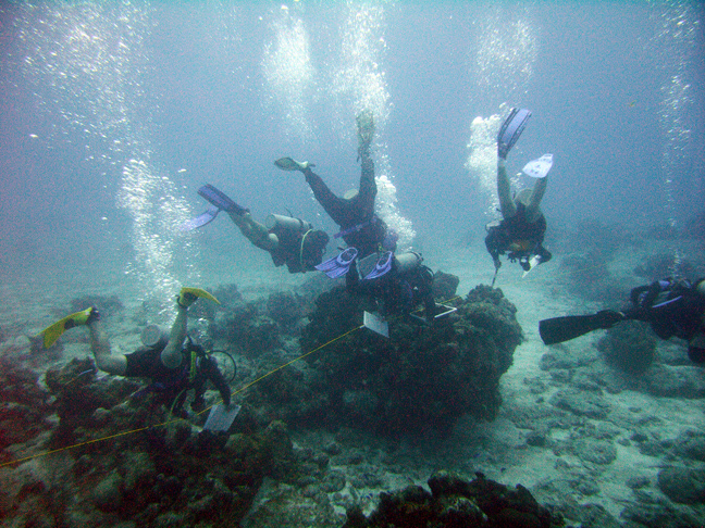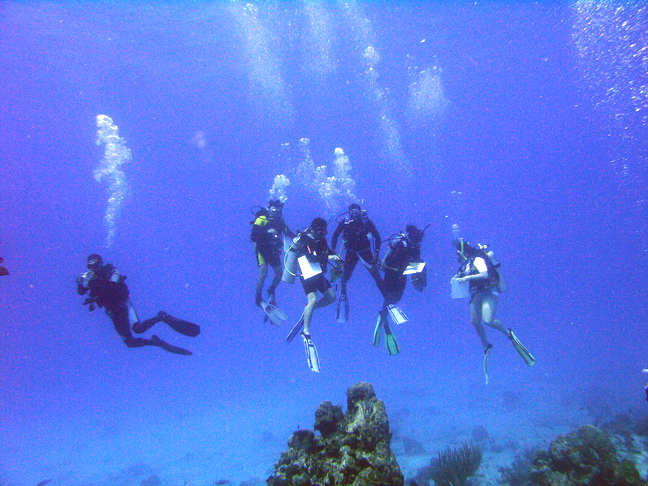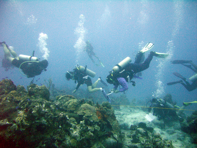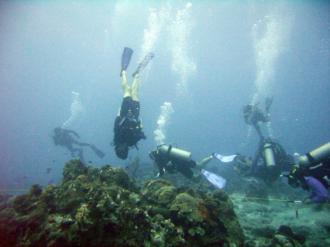After presenting our draft CSI protocols for investigating damaged coral reefs to the International Coral Reef Initiative (ICRI) at their October, 2006 meeting in Cozumel, the coral reef CSI team proceeded to train the first 21 marine biologists, attorneys and NGOs from 13 countries ( Mexico, US Virgin Islands, Belize, Brazil, Puerto Rico, Jamaica, Indonesia, Turks & Caicos, Philippines, USA, UK, Barbados and India) in these techniques. The photos below were taken during this training.