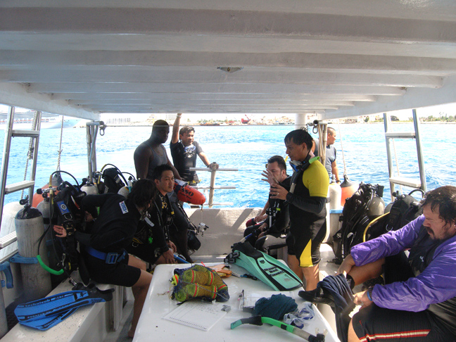These last photos are of 1) those CSI-trainee marine biologists, and most of the Coral Reef CSI team instructors (I took the photo); and 2) a very happy and contented federal government bureaucrat/dive bum.